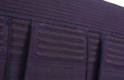腹帯は柔らかく、コシがあるため丹田を締め上げ、腰の安定を生みます。 大垂、小垂は額刺になっているので見栄えが良くさらに型がつけやすくなっております。