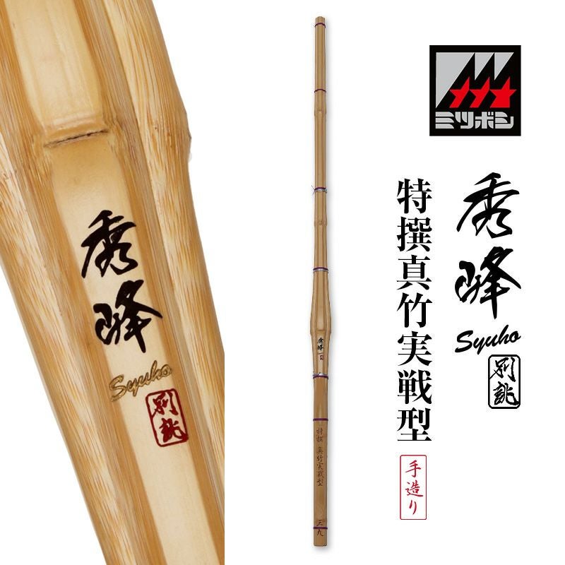 竹の繊維が密になった上質な真竹は色つやが良く、硬さと柔軟性を併せ持った最高峰の竹刀になります。 先節の位置が整った竹刀造りにバランスのいい一本竹を厳選し、さらに職人の加工を加えることで、高い強度でバランスの良い竹刀に仕上がります。