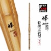 実戦型竹刀は張節の部分を多くく膨らませることで、重心を手元に寄せ、剣先を軽くした竹刀です。剣先が軽いと竹刀を速く、鋭く打突することが出来ます。耐久性は劣りますが、試合や審査などのここぞというところで力を発揮します。