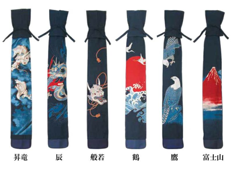 大きな絵柄を前面にあしらった竹刀袋三本入りです。